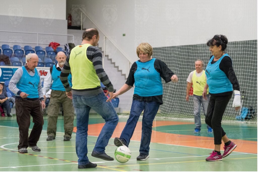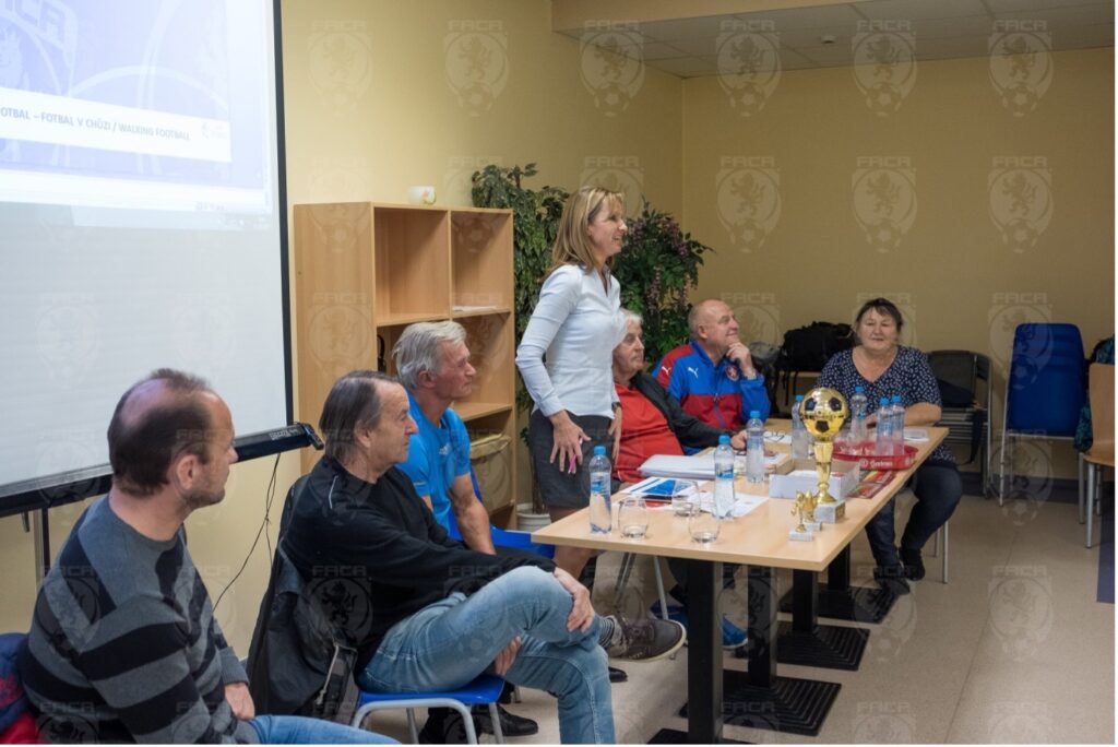 Všechno začalo poslední říjnový den roku 2017, kdy se ve Sportovní hale Na stínadlech sešla veřejnost, aby se seznámila s novou aktivitou pro seniory. Fotbal v chůzi představil tepličan Rudolf Řepka spolu s Míšou Veselou (manažerkou sociálních projektů FAČR) nejprve slovně. Poté se oba společně s teplickými fotbalovými celebritami Přemyslem Bičovským, Jaroslavem Melicharem, Pavlem Verbířem a s přítomnými zájemci, kteří si chtěli fotbal v chůzi vyzkoušet, zapojili do ukázkové hry.